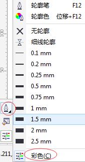 方法二 单击工具箱中“轮廓笔工具”右下角小黑三角,点击“彩色工具”。