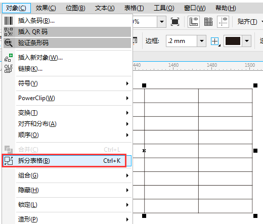 2. 在选中网格的状态下,执行“对象>拆分表格”命令(快捷键‘Ctrl+K’)。