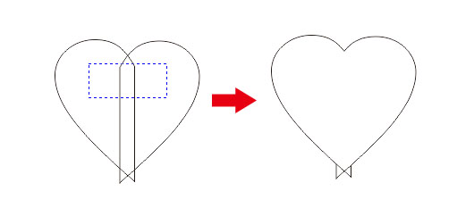 使用橡皮擦功能前先要选择对象。下图红色心形中间的白色区域就是橡皮擦移除的。