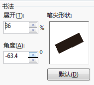 “展开”选项的取值范围为1—100,100为默认值。减少该选项值,可以使方形笔尖变成矩形,圆形笔尖变成椭圆形,这样书法效果更加突出。