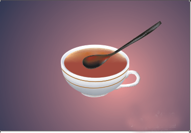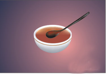 5、运用钢笔工具,勾勒出勺子头部轮廓,并用网格填充命令对其进行填充,如图效果