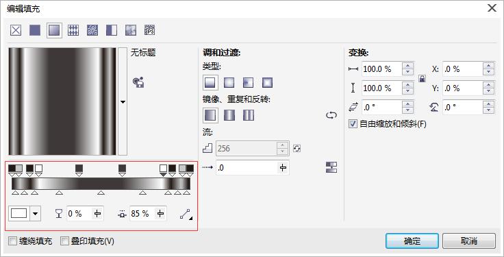 在“编辑填充”对话框中设置属性:在渐变条上任一位置双击即可添加一个节点(矩形加三角形的箭头形状),此时,您可以在渐变条下面的节点颜色下拉框中选择节点颜色,您可以根据实际情况添加多个节点,如下图。(您也可以根据自己的想法去另行设置以下属性)