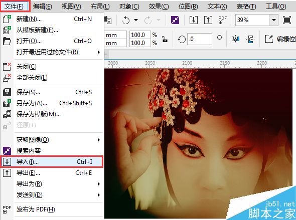 步骤1:打开CorelDRAW软件,执行“文件>导入”命令,打开一张待处理的图片。