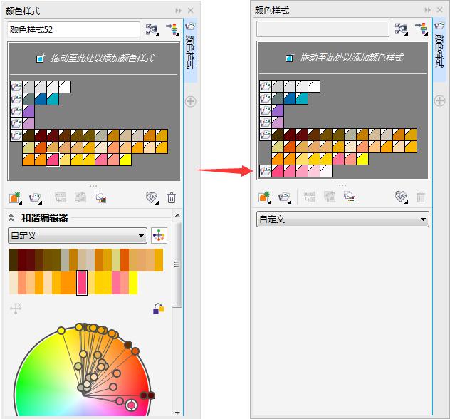 1. 在“颜色样式”泊坞窗中选择一个颜色样式作为渐变的主要颜色。