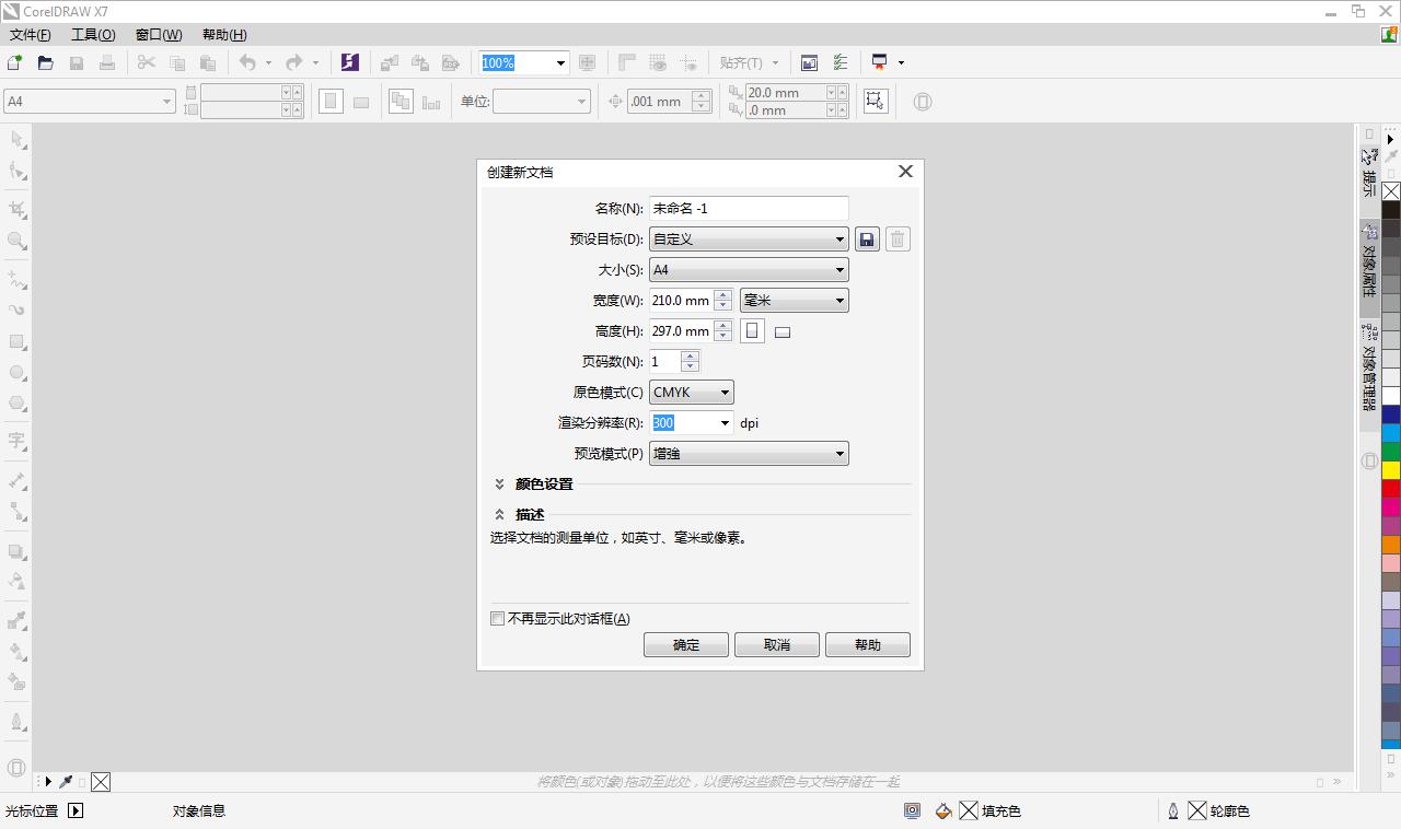 点击确定后,下次启动CorelDRAW时,即会显示创建新文档对话框。