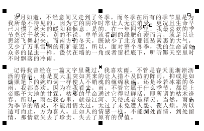 1. 使用F8“文本工具”,拖动鼠标实现段落文本框,在框内单击添加段落文字。然后在在文字框上绘制一个矩形。