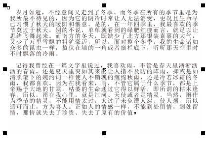 1. 使用F8“文本工具”,拖动鼠标实现段落文本框,在框内单击添加段落文字并选择。
