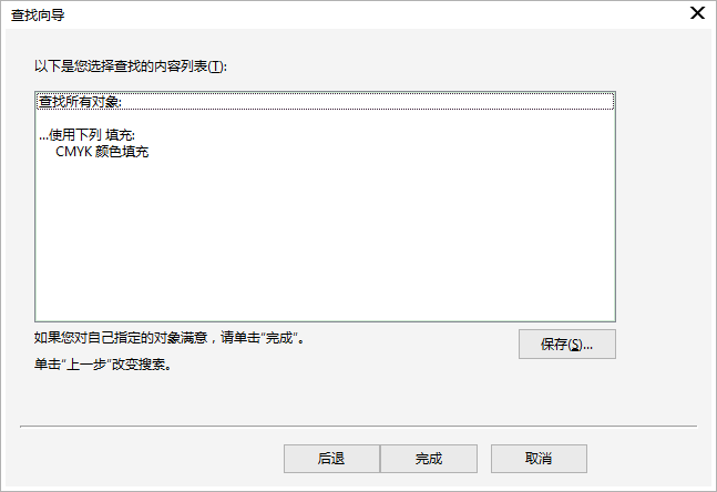 以CMYK为例,点击“完成”之后,查找全部即可,经过查找之后的文件会被选中。