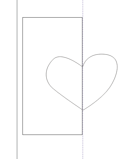 3、为保持心的两边对称,我们画一矩形,如图所示,矩形要大过心形的一半,如图所示