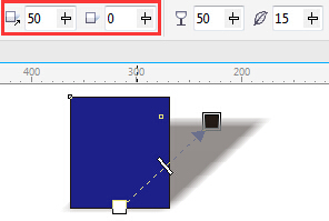 1、矩形工具先绘制一个蓝色矩形,并对图形添加阴影,然后对阴影进行调节。在属性栏中我们可以看到淡出工具和阴影延展这两个属性呈灰色是不可以用的。