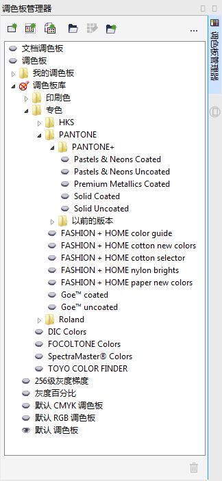执行“窗口”>“泊坞窗”>“调色板管理器”命令,打开“调色板管理器”泊坞窗