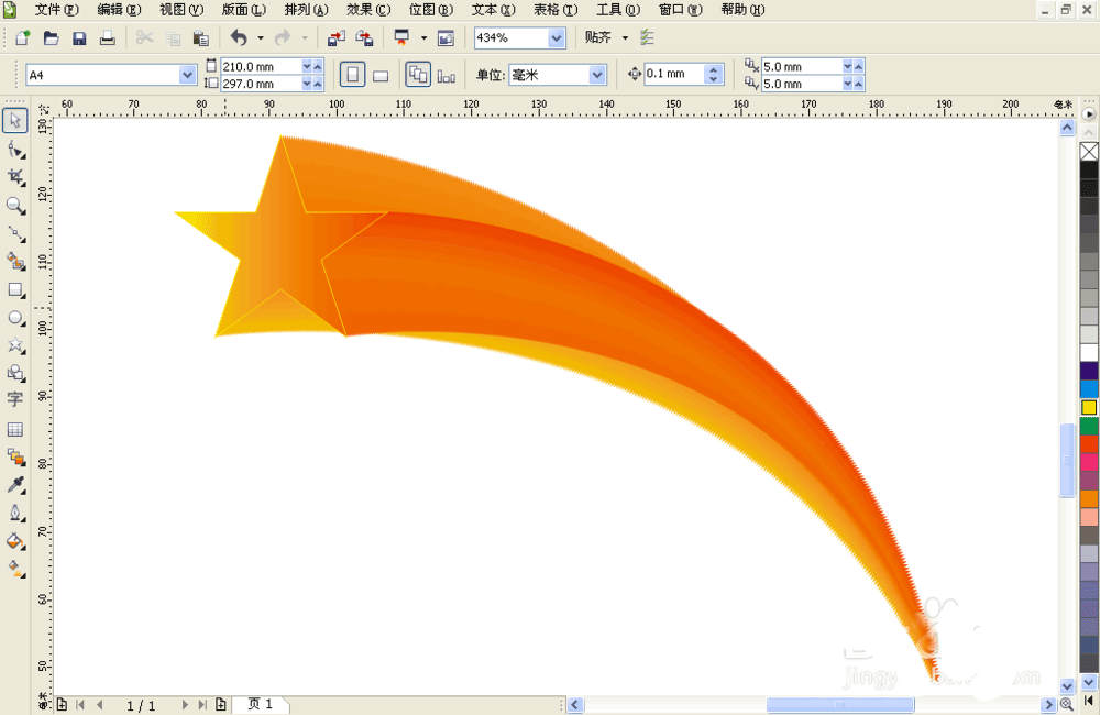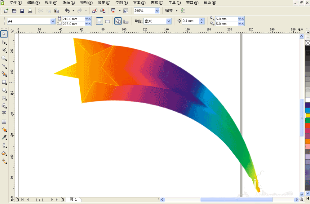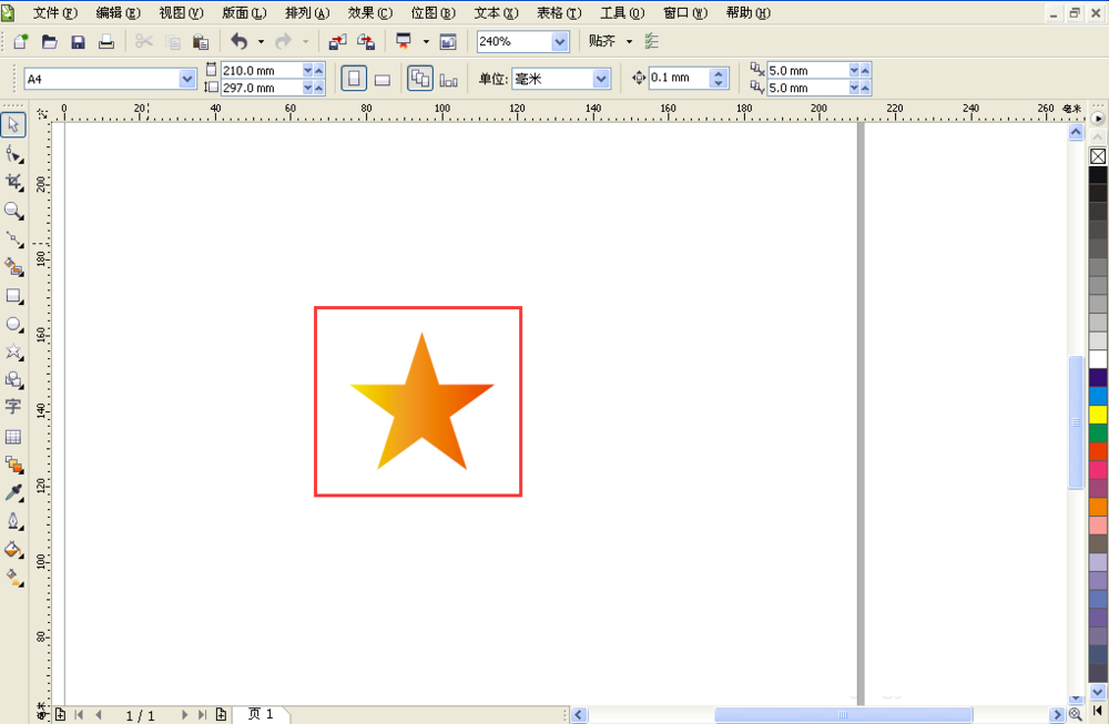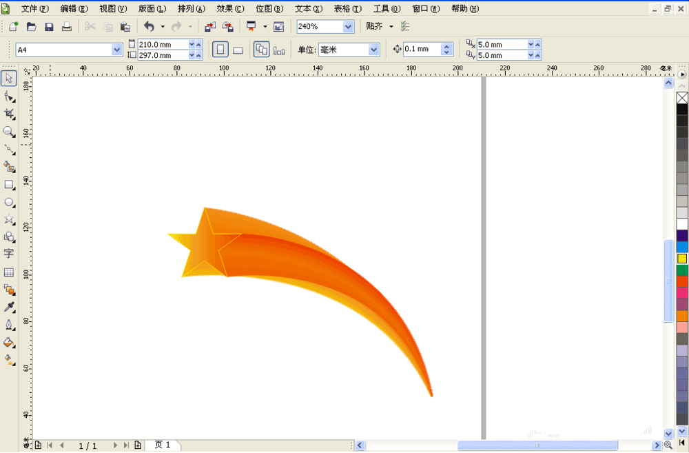 3、绘制一个五边星星,填充渐变色。