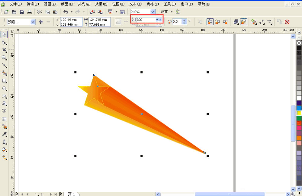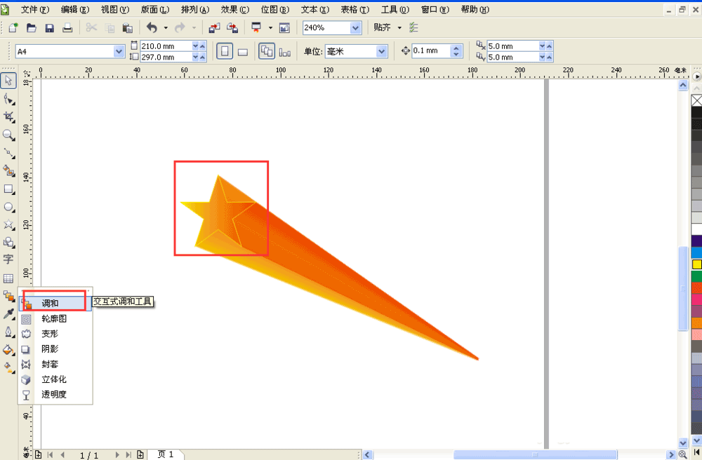 5、选中交互式调和工具将两个星星调和,调和步骤设置的偏移量要大于等于300,选中大的星星填充外轮廓为黄色。
