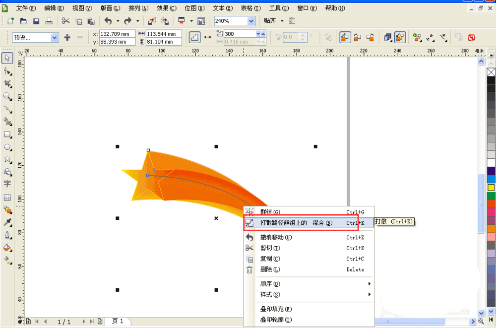 8、点击弧形星星选中右击打散路径群组上的混合,点击弧线删除。
