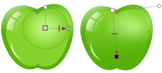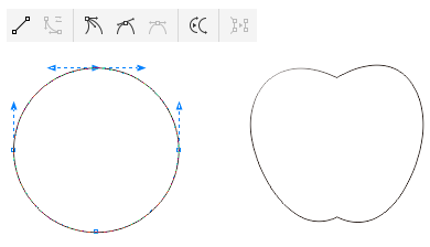 苹果的外形很简单,这里使用"椭圆工具"绘制正圆,进行转曲调整,将圆滑对称节点装换为尖突节点,在曲线路径中创建锐角效果,如图所示。