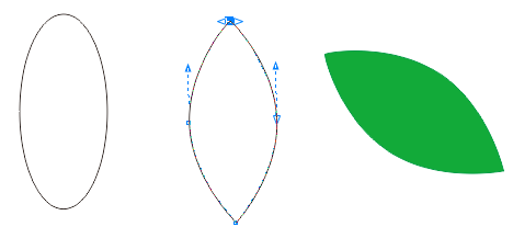 绘制椭圆形,转曲使用"形状工具"将上下手柄向中间拖动,形成叶子形状,去除描边填充绿色。