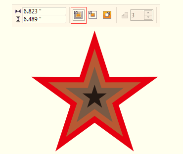 步骤四 单击属性栏中的“到中心”按钮,即可创建由图形边缘向中心放射的轮廓图效果。