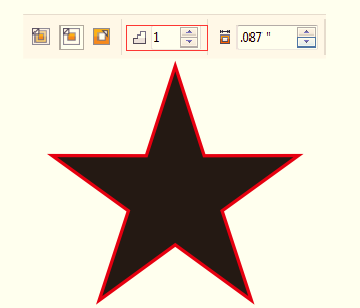 步骤六 在属性栏中设置“轮廓图步长”,如“1”。