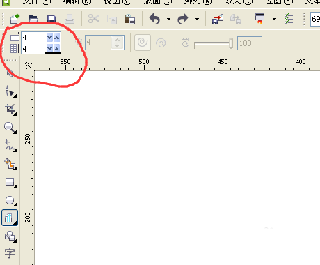 2、设置行和列的参数,如左图,然后在工作区域按照鼠标左键,建立图纸。如右图,