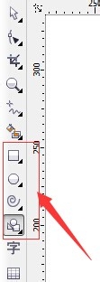 2、然后选择左侧工具栏,如图,随意选出要使用的图像,倒三角符号点击会出现更多的选择
