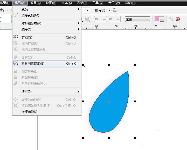 4、拖选物件和阴影,使用排列菜单中拆分阴影群组命令,分离物件和阴影。