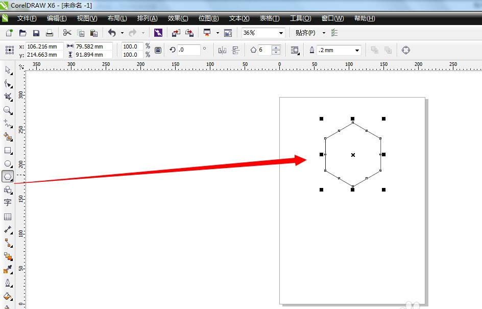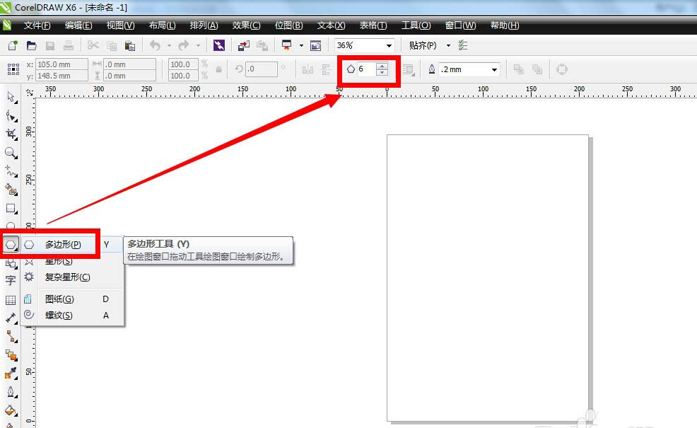 1、在cdr软件里面新建了页面之后,选择使用多边形工具,并且在页面上方工具栏里设置多边形的边数为6