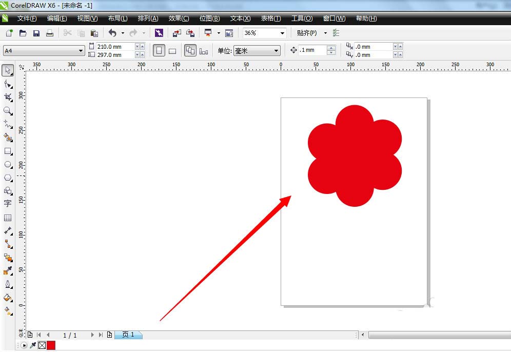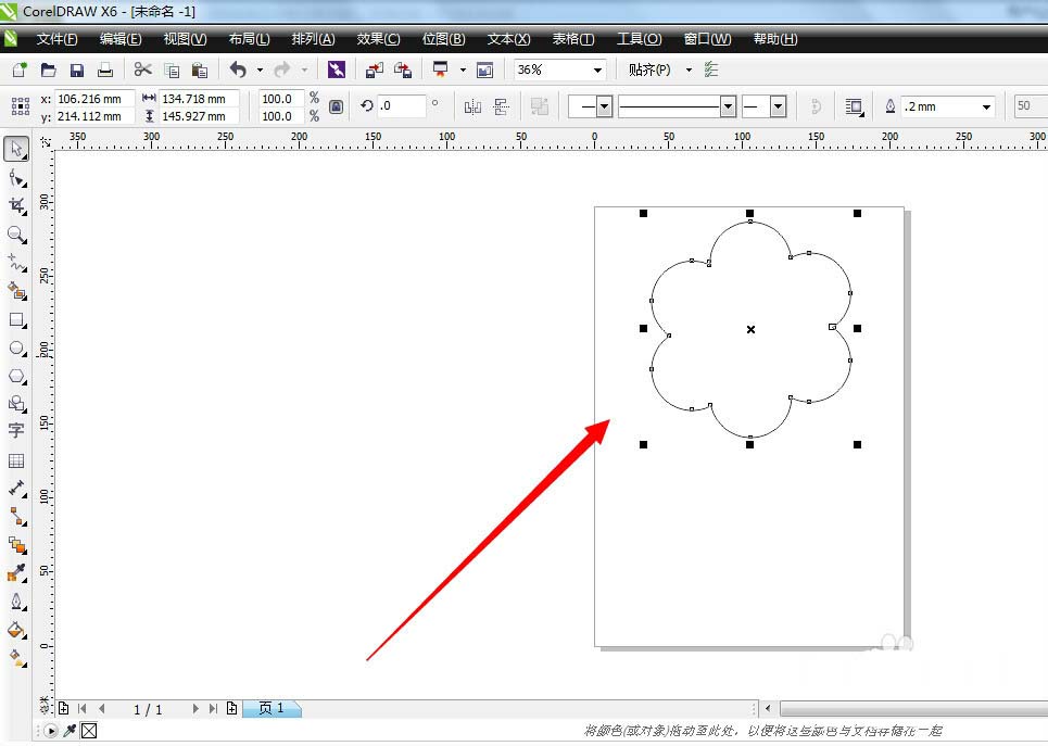 6、接着就可以在页面上看到一个花瓣的轮廓图形,大概就是图中所示的图形