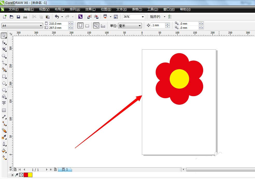 8、最后,我们还可以使用椭圆形工具,在红色花瓣的中间绘制一个正圆,填充为黄色,去描边颜色,这样页面上的花瓣看起来就更加漂亮形象啦~