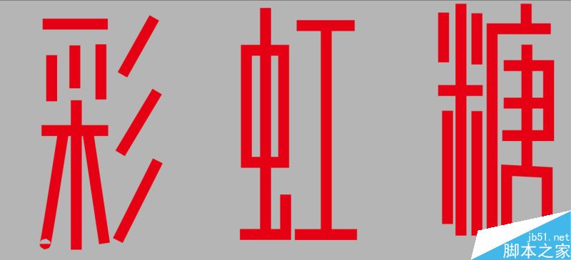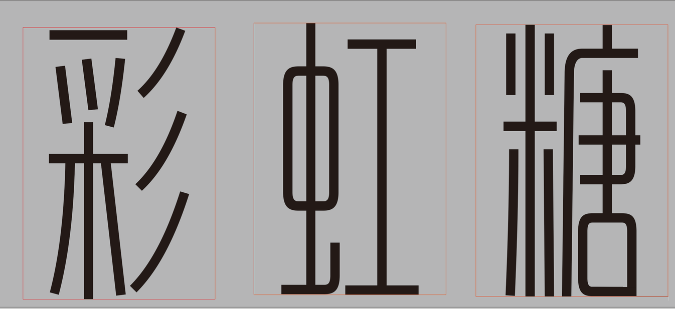 3、在CDR找一种类似于模板的字体,输入彩虹糖,然后画3个红色的矩形框,把文字套进去,我这里使用的字体是:造字工坊悦黑纤细