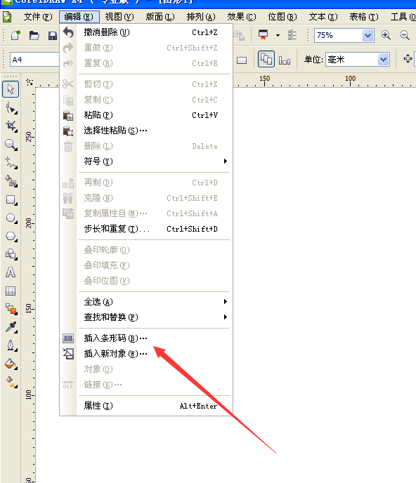 4、在编辑里面找到插入条形码的字样,我们点击它