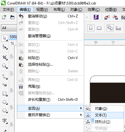 在最上面菜单依次选择 编辑-全选-文本,进入界面。