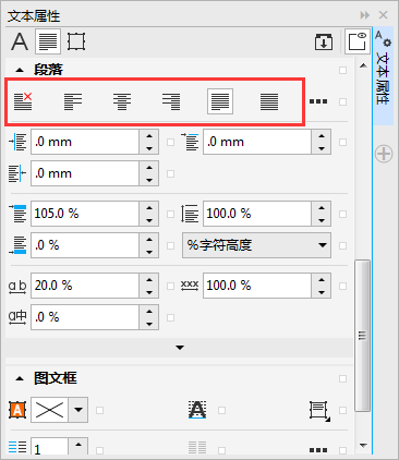 或者在“文本属性”中的“段落”面板下的对齐方式中也可以进行此操作。