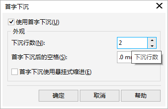 3. 勾选“使用首字下沉”激活对话框,在“下沉行数”数值框中输入需要下沉的行数。