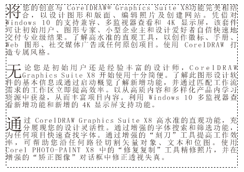 1. 使用F8“文本工具”,在CDR绘图区域拖动鼠标实现段落文本框,在框内单击添加段落文字,或者也可以从已有文字中复制文本到文本框。如图所示。