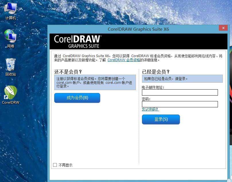 1、新安装了CorelDRAW X6打开老是弹出会员怎么办?如图