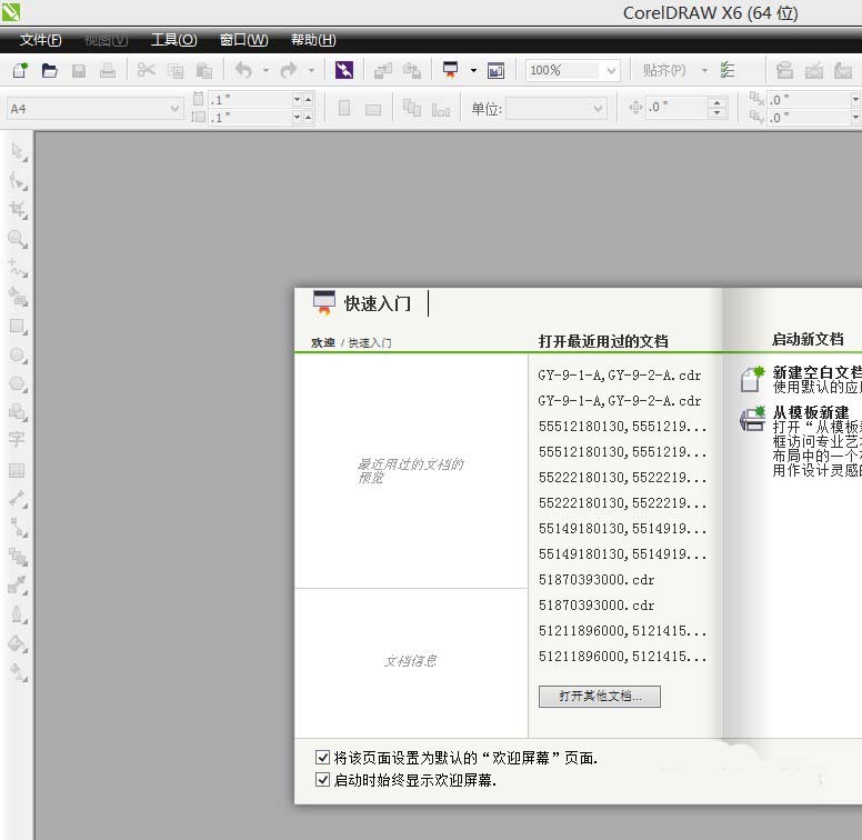 5、以后再打开CDR就不会弹出会员对话框了,(这个细心的朋友或常用的朋友应该都会,细心点你会解诀很多问题哦!),如图