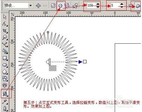 5、点击交互变形工具,选择拉链变形,数值如图,在加平滑变形。效果如图。