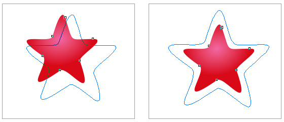 要缩放对象,在CorelDRAW中,使用“选择工具”选中状态下,拖动某个角调整大小手柄就是等比例缩放,不需要按任何辅助键,如下图(左)所示;如果要从中心进行缩放,在拖动时按住 Shift 键,如下图(右)所示。