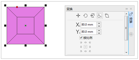 CDR等比缩放方法三:利用变换--大小泊坞窗。