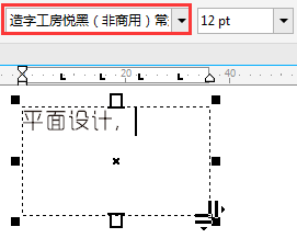 8. 插入文本框时,菜单栏中的字体会默认转跳为之前所设置的“造字工房悦黑体”。而且在以后打开软件输入美术字或段落文本时会以这个设置为默认字体。