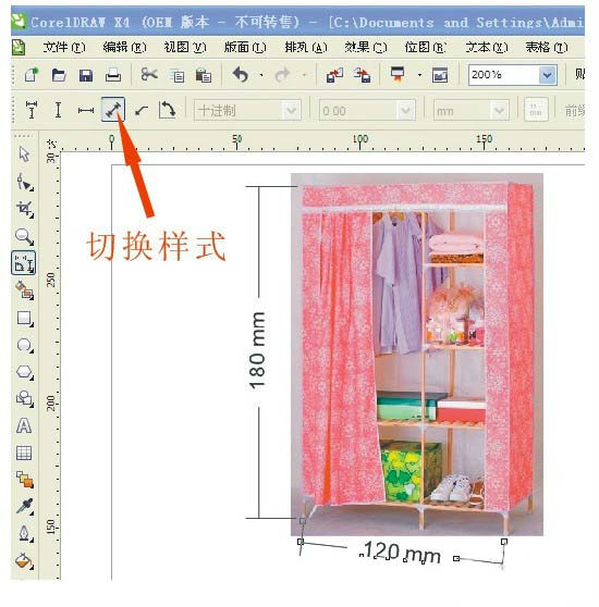 1、首先我们把需要标注尺寸的图片拖入CDR中来,选择量度工具