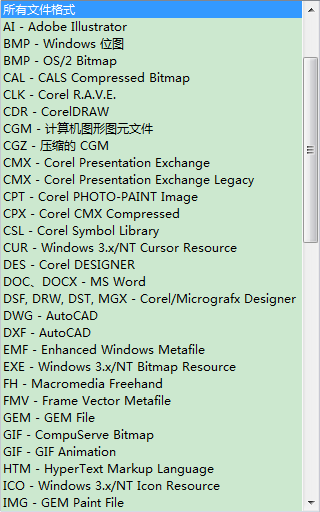 在CorelDRAW软件菜单下的导入里面,可以看到该软件支持的所有文件格式,用的较多的有TIF、JPG、PSD、EPS、BMP、AI、WMF、DWG等等这些图片格式,最新版CorelDRAW X8更是加入了更多图像文件格式支持、针对 300 多种相机的原始格式支持以及独立页面图层功能等。几乎与其他软件可畅行无阻地交换共享文件。