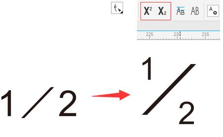 方法二:输入法中的小键盘(软键盘)选择数学符号中有“/”符号,不过在输入文本之后,使用“形状工具”单一文本,借助菜单栏中上标、下标来实现。