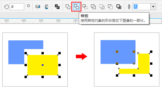 修剪功能可以使用其他对象的形状剪切下图像的一部分,通过移除重叠的对象区域来创建形状不规则的对象。