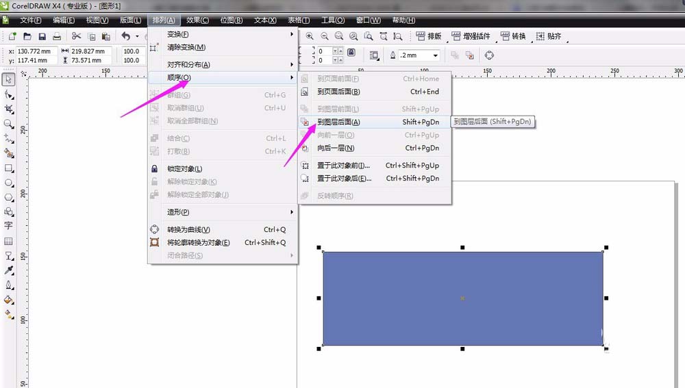 3、选择矩形工具,填充颜色,然后调整文字、背景顺序,如图所示