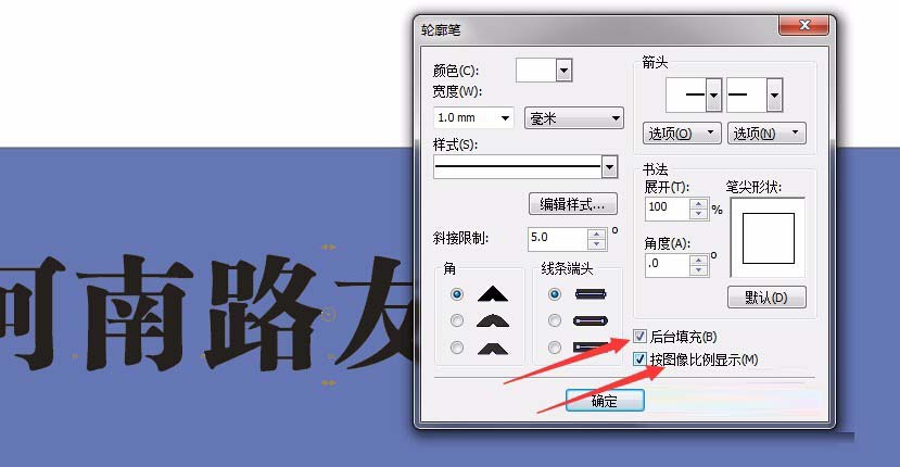 7、值得注意的是,如果想要描边不占用文字本身的大小,在设置参数的时候,有2项记得勾选就可以了,如图所示