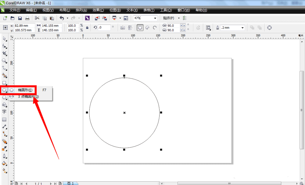 1、在CorelDraw X6软件界面的左边工具栏选择椭圆形工具,按住键盘上的ctrl键,绘制一个正圆图形