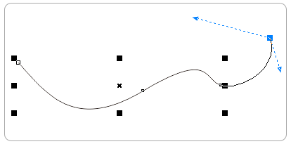 3. 使用“贝塞尔工具”在绘制的过程中(指不释放鼠标状态下),在无输入法状态下按C键拖动,就可以让当前的节点手柄曲折(相当于形状工具下的尖突节点,或者PS钢笔工具下的Alt键类似)。