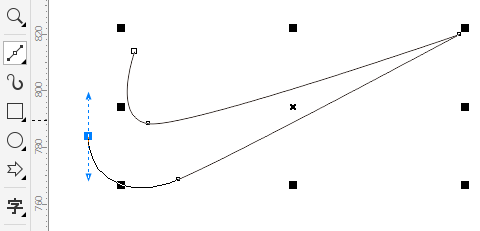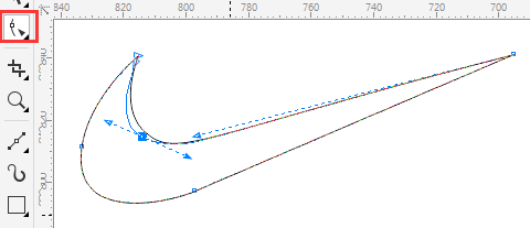 6. 当然,这样绘制出来的曲线不是一下就能达到完美要求,更多情况下,还需要借助“形状工具”来调整,您可以选择节点和手柄拖动微调获取到更加精准的图形,如图所示。