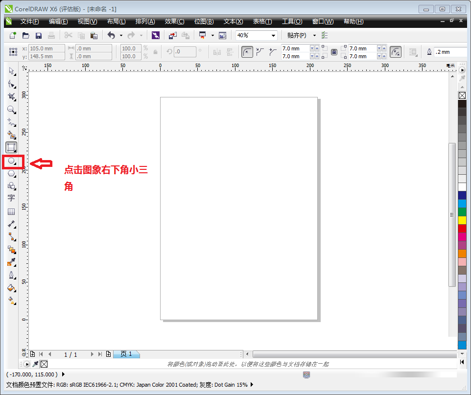 1、打开Coreldraw X6软件,在左侧工具栏矩形下方找到椭圆该工具,快捷方式为F7。